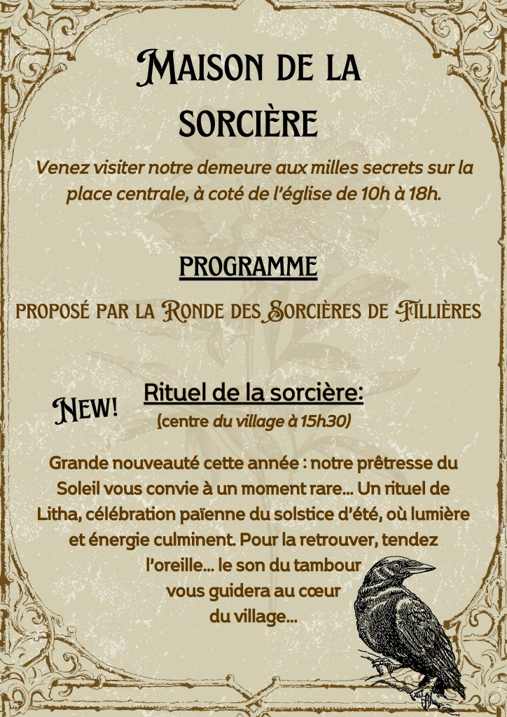 Grande nouveauté cette année: notre prêtresse du Soleil vous convie à un moment rare… Un rituel de Litha, célébration païenne du solstice d’été, où lumière et énergie culminent. Pour la retrouver, tendez l’oreille… le son du tambour vous guidera au cœur du village….